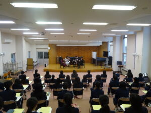 プロフェッショナルなアンサンブルを生演奏で聴くことで、生徒たちは大いに刺激を受けました。また、質疑応答の時間では、演奏者の方々からプロの視点でのお言葉を頂くことができ、非常に学びの多い時間となりました。