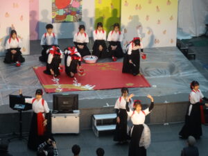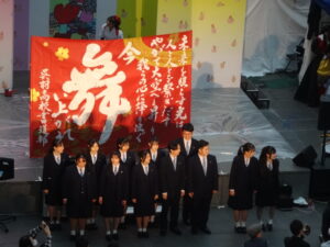書道部が、音楽部の合唱にあわせてメインステージでダンスや巨大書道を製作するコラボショーがテレビで生放送され、番組の視聴者や、イベントに観覧に訪れた大勢の方々に、両部のパフォーマンスを楽しんでいただくことができました。