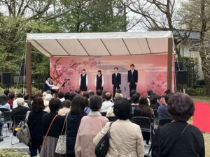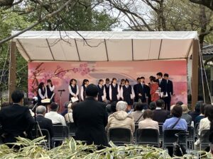 4月5日(日)に音楽部が、高志の国文学館「観桜の集い2026」に出演し、声楽アンサンブル・合唱を披露しました。プログラムは以下の通りです。ご来場の皆様に喜んでいただき、春の楽しいひとときを一緒に過ごすことができました。